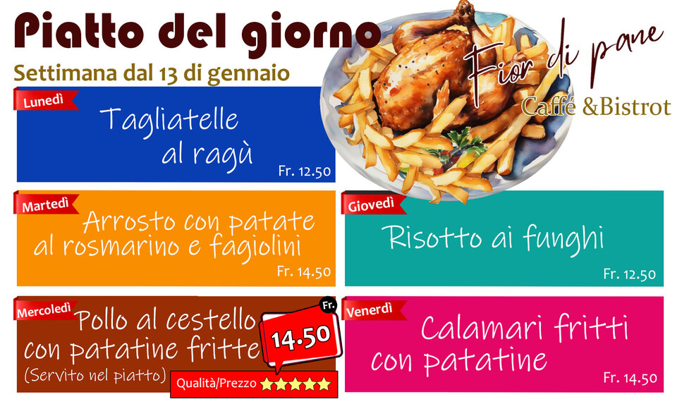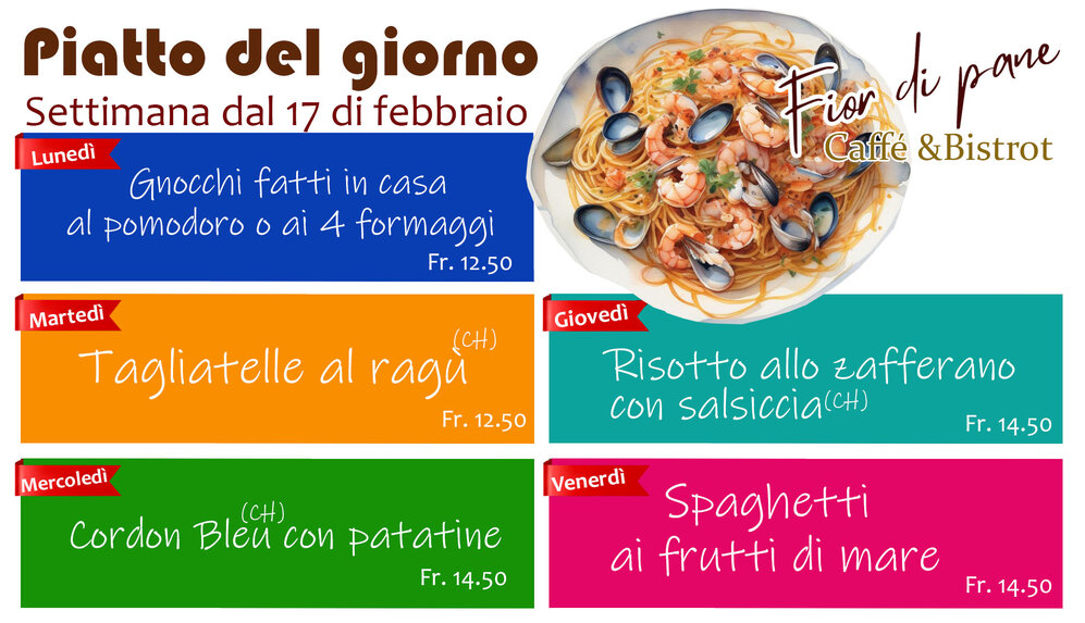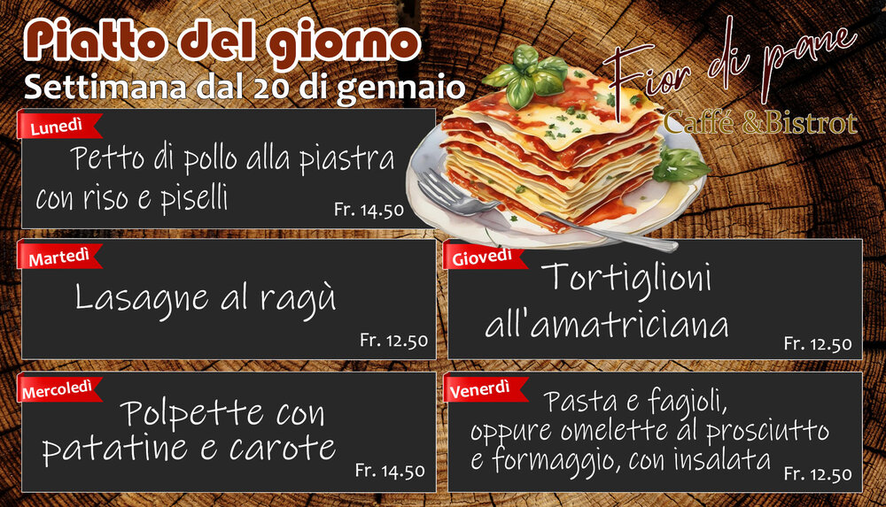Da lunedì a giovedì vi proponiamo un piatto del giorno.